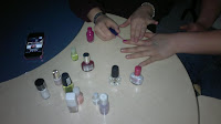 Vietimme perjantaina koulussa Älä osta mitään -päivää. Tarkoituksena oli tarjota vaihtoehtoja ostetuille joululahjoille. Siksipä välituntien aikana oli mahdollista käydä kierrätystorilla, laitattamassa hiuksiaan tai kynsiään nuorten omassa salongissa tai askartelemassa pakettikortteja, koruja tai huovutettuja joulukoristeita.